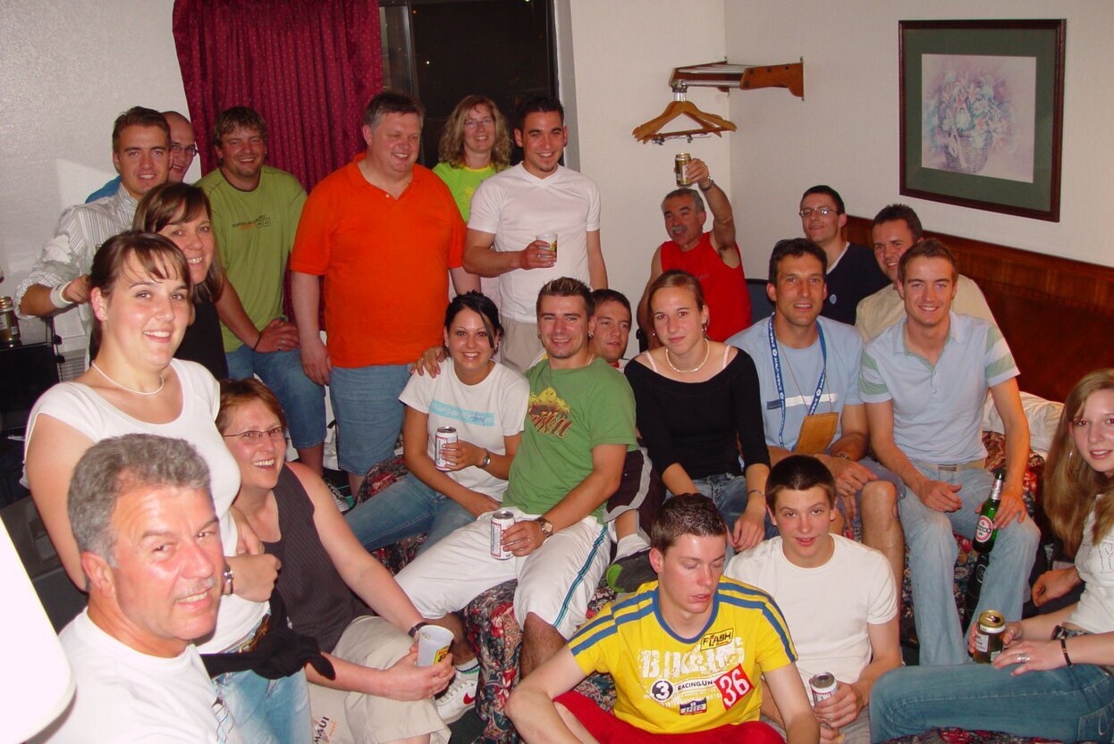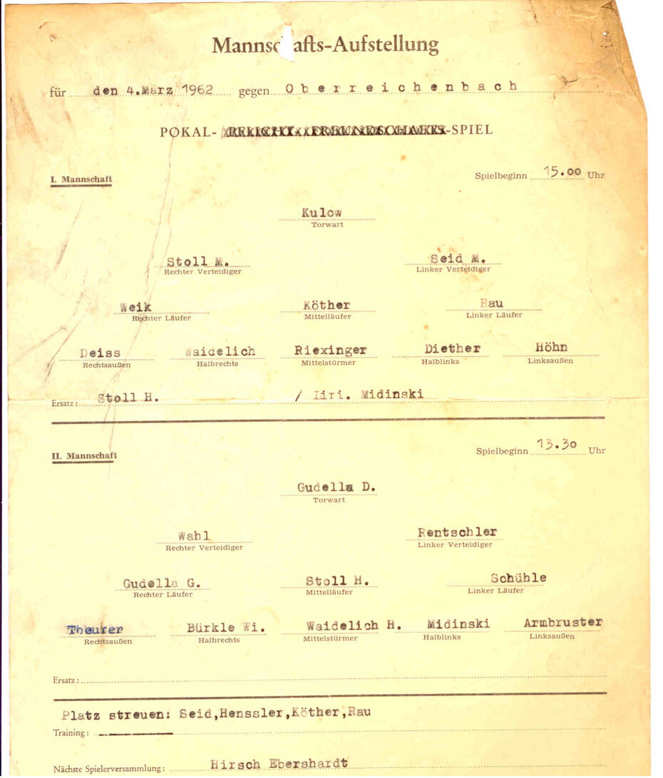 Allabendliche Szene 1957 an der Kreuzung vor der Kirche und der Molkerei sowie im angrenzenden Hof von Bauer Stoll: Einige Lausbuben und einige ältere Burschen, allesamt Höfleskicker und Straßenfußballer - kicken auf der Straße – ja, dies war damals noch möglich -, auch Ebershardter Burschen waren häufig zu Gast. Man hätte manchmal leicht drei Mannschaften aufstellen können.